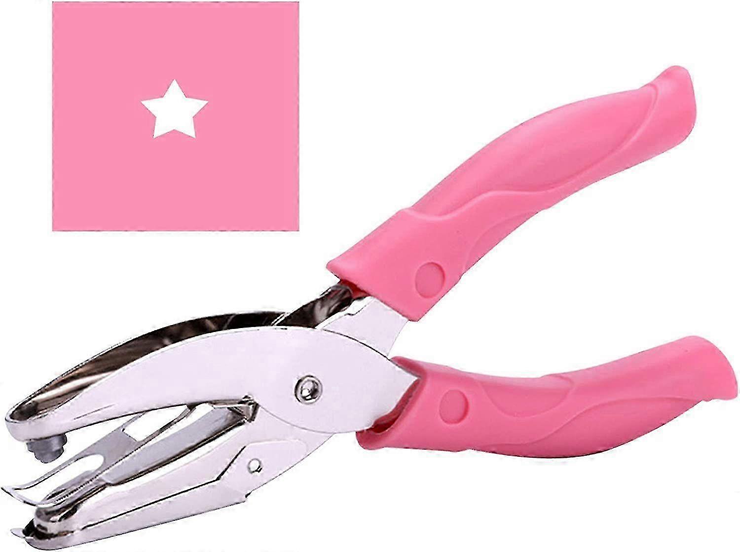 25-26 1/4 Inch Small Mini Tiny Star Shaped Hole Paper Punch Puncher with Pink Soft Handheld Grip