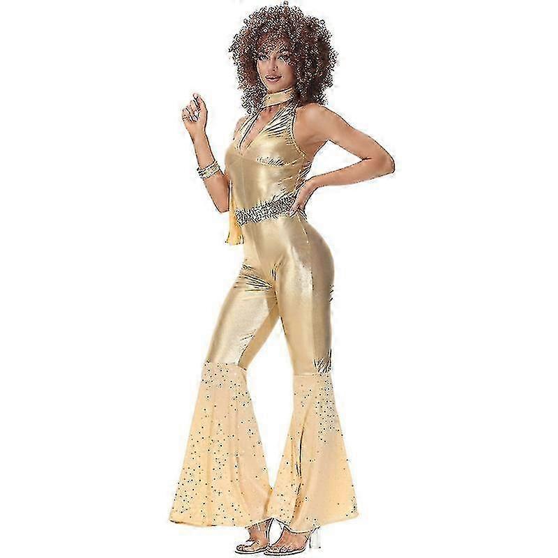 25-26 Sexy Metallic Disco Jumpsuits - Women's Open Midriff Disco Jumpsuits
