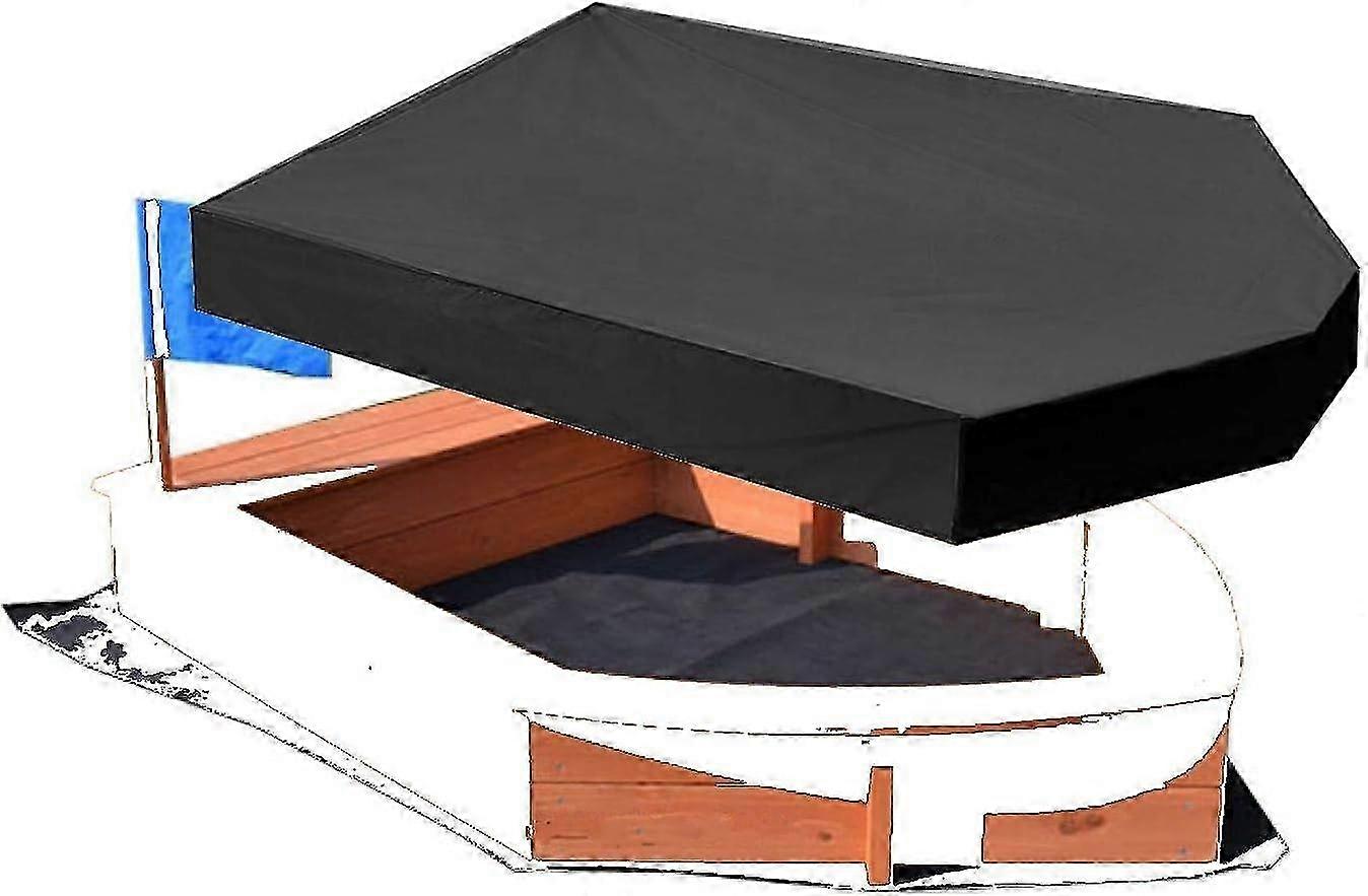25-26 Sandbox Cover, Boat Shaped Sandbox Protective Cover with Drawstring, Waterproof, Oxford Black 160 * 113 * 22cm