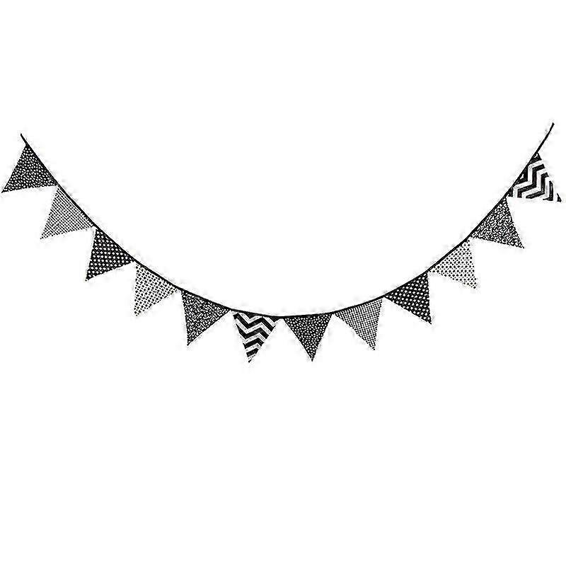 25-26 Black And White Cotton Triangular String Flag Multicolor Pennant Banner For Festival Wedding Decorations