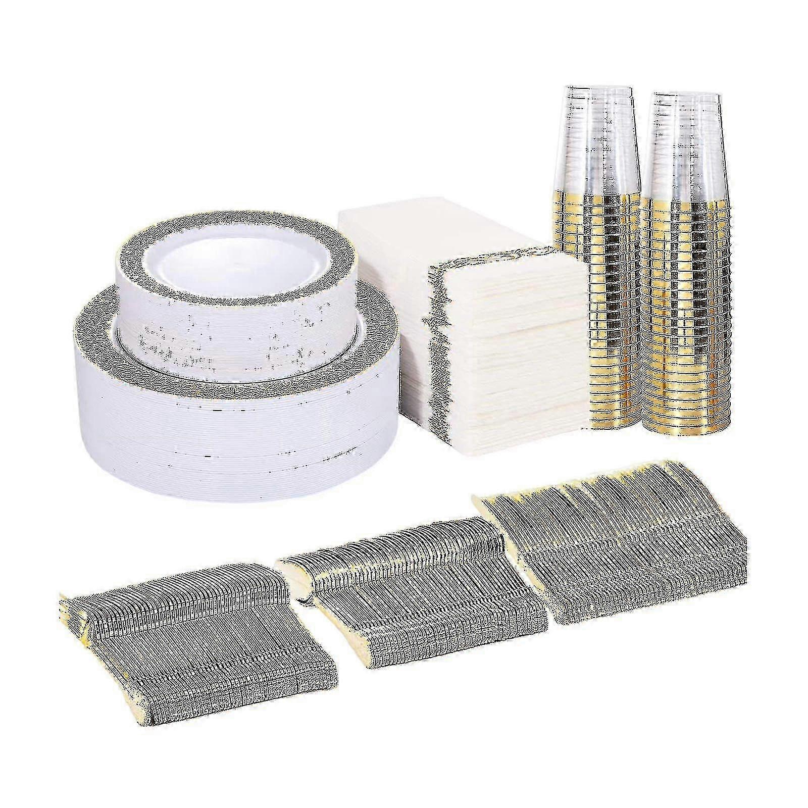 25-26 175x Disposable Tableware Plastic Plate For Catering Wedding Gold Rim