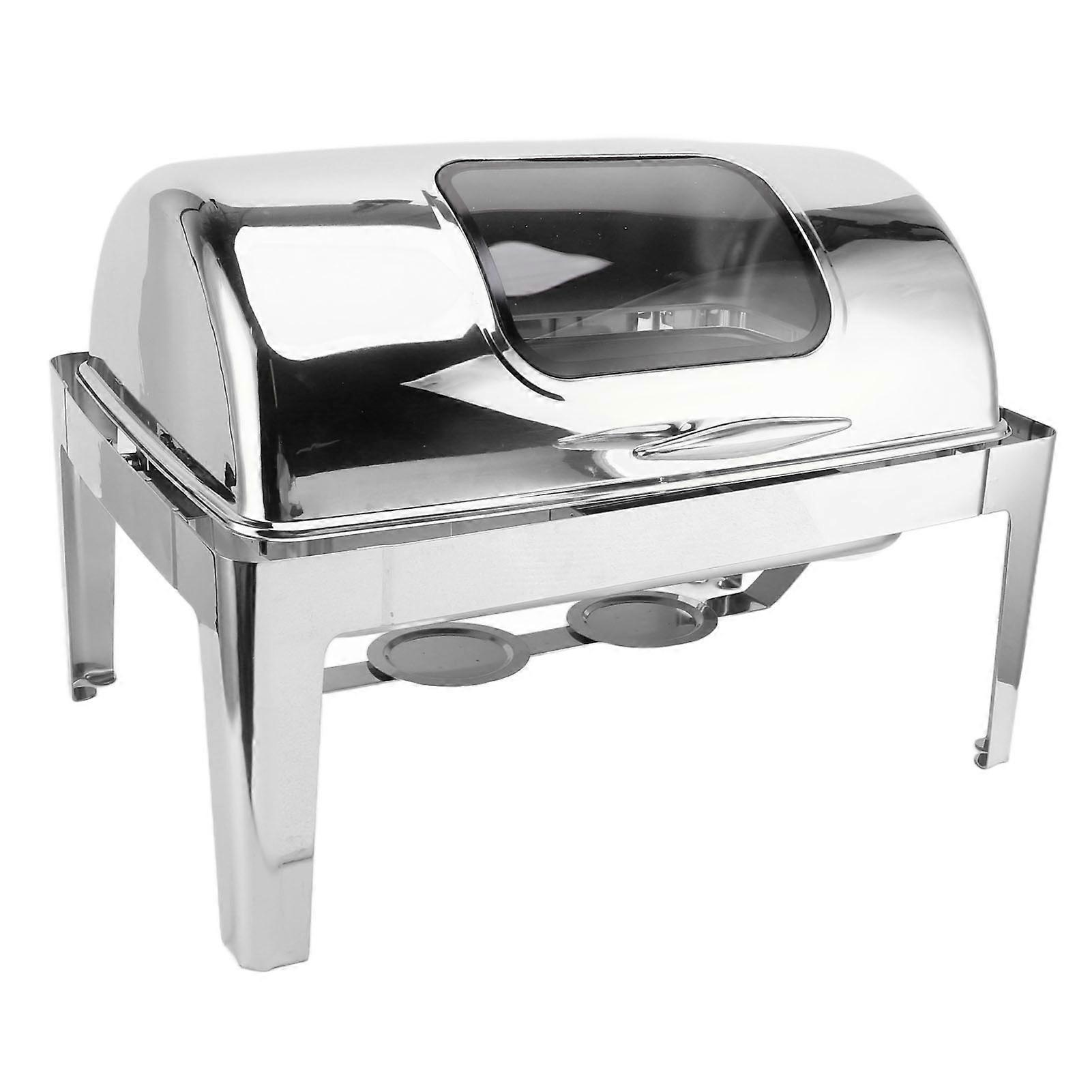 Chafing Dish Stainless Steel Buffet Chafer 9L Buffet Catering Food Warmer Transparent Glass Lid Alcohol Heating Rectangular Single Food Tray Stainles