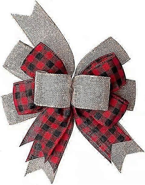 25-26 Checkered Burlap Bow Christmas Wreath Fall Christmas Tree Topper Butterfly Check Bow, Red