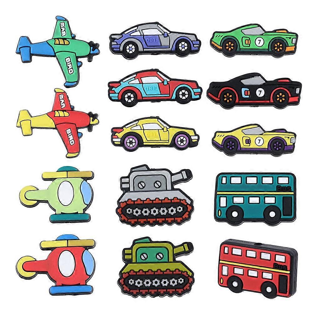 14pcs 14 styles Cartoon Food Grade Silicone Focal Beads Chewing Beads For Teethers DIY Nursing Necklaces Making Vehicle 10~35x20~30mm 1pc/style