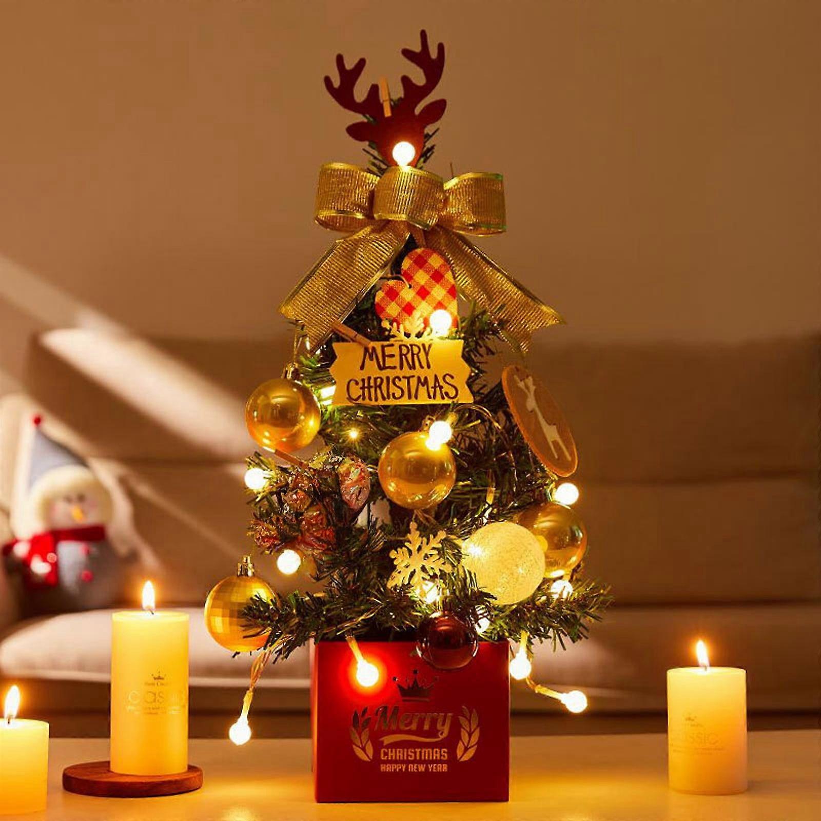 Hiroekza Mini Christmas Tree with Lights & Accessories, Desktop Decoration, Compatible with Christmas Home Decor Ornaments