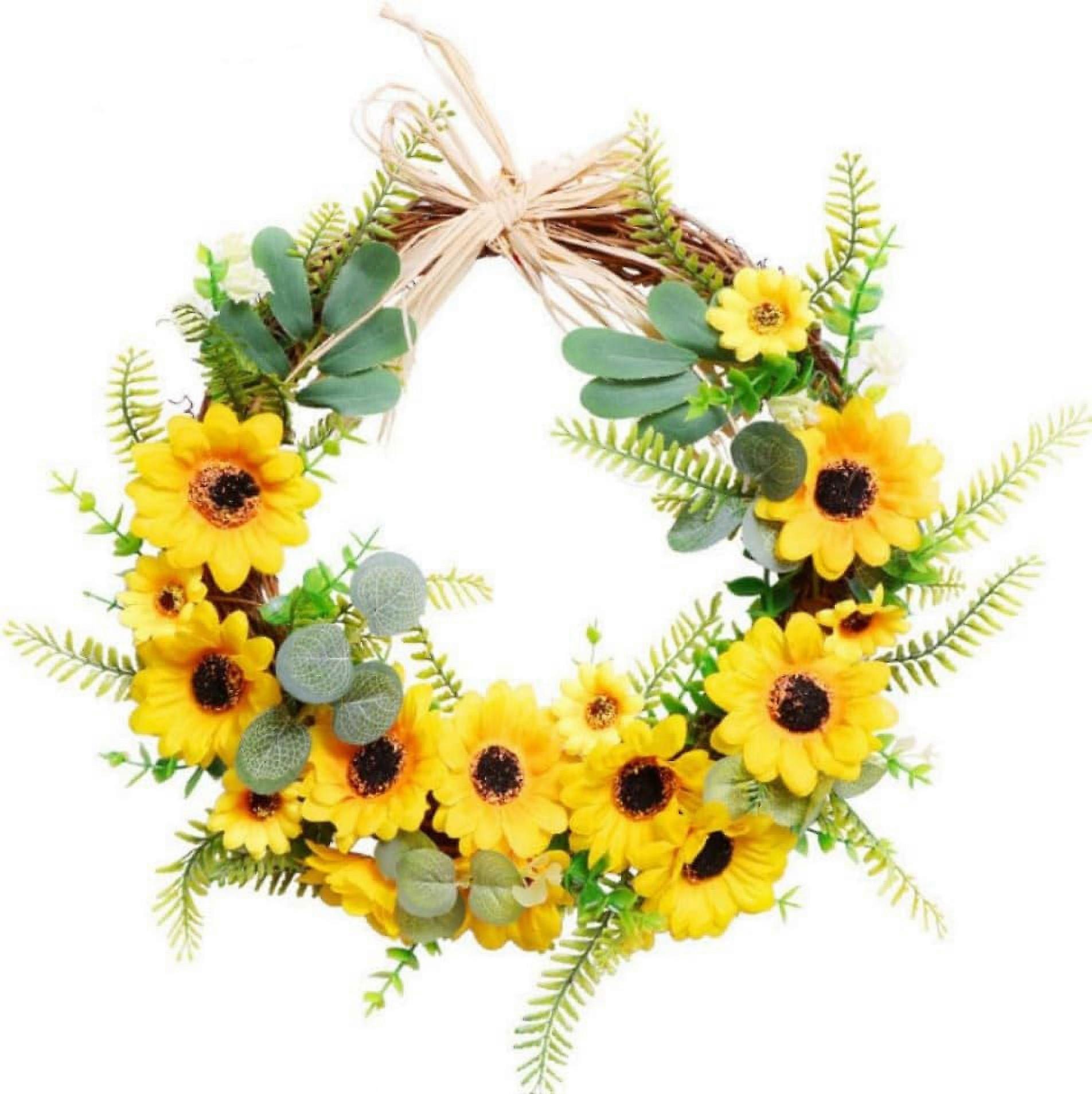 15.7inch Artificial Sunflower Wreath Yellow Flower Wreath for Front Door Wall Window Hanging Decor Front Door Farmhouse (Beige)
