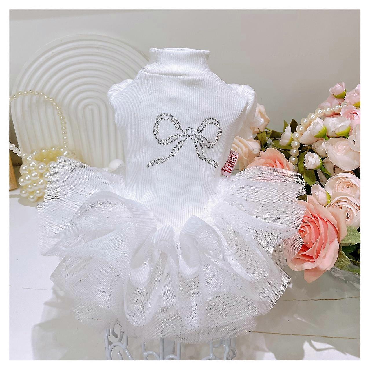 Pet Spring Mesh Patchwork Dress Dog Bubble Sleeve Base Shirt Bow Vest Yorkshire White Gauze Skirt Base Skirt