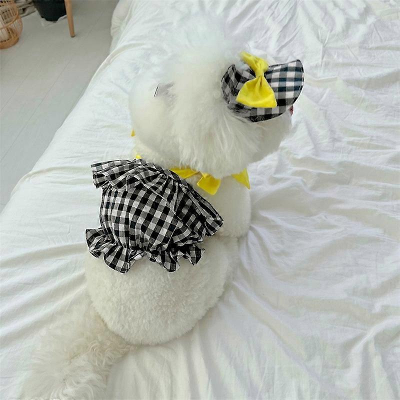 Pet Spring Plaid Camisole Vest Cute Little Bear Ear Sunshade Hat Small Medium-sized Cat Top 2-piece Set T-shirt