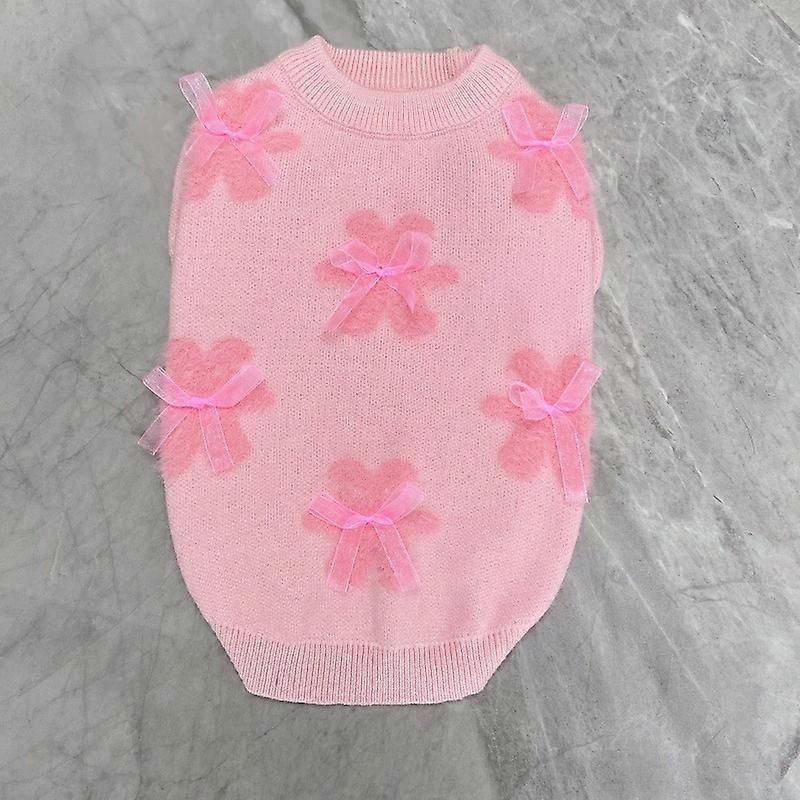 Autumn and Winter Bear Bow Sweater Dog Knitted Clothes Small and Medium Sized Dog Bibi Bear Teddy Pomeranian Pink Small Coat