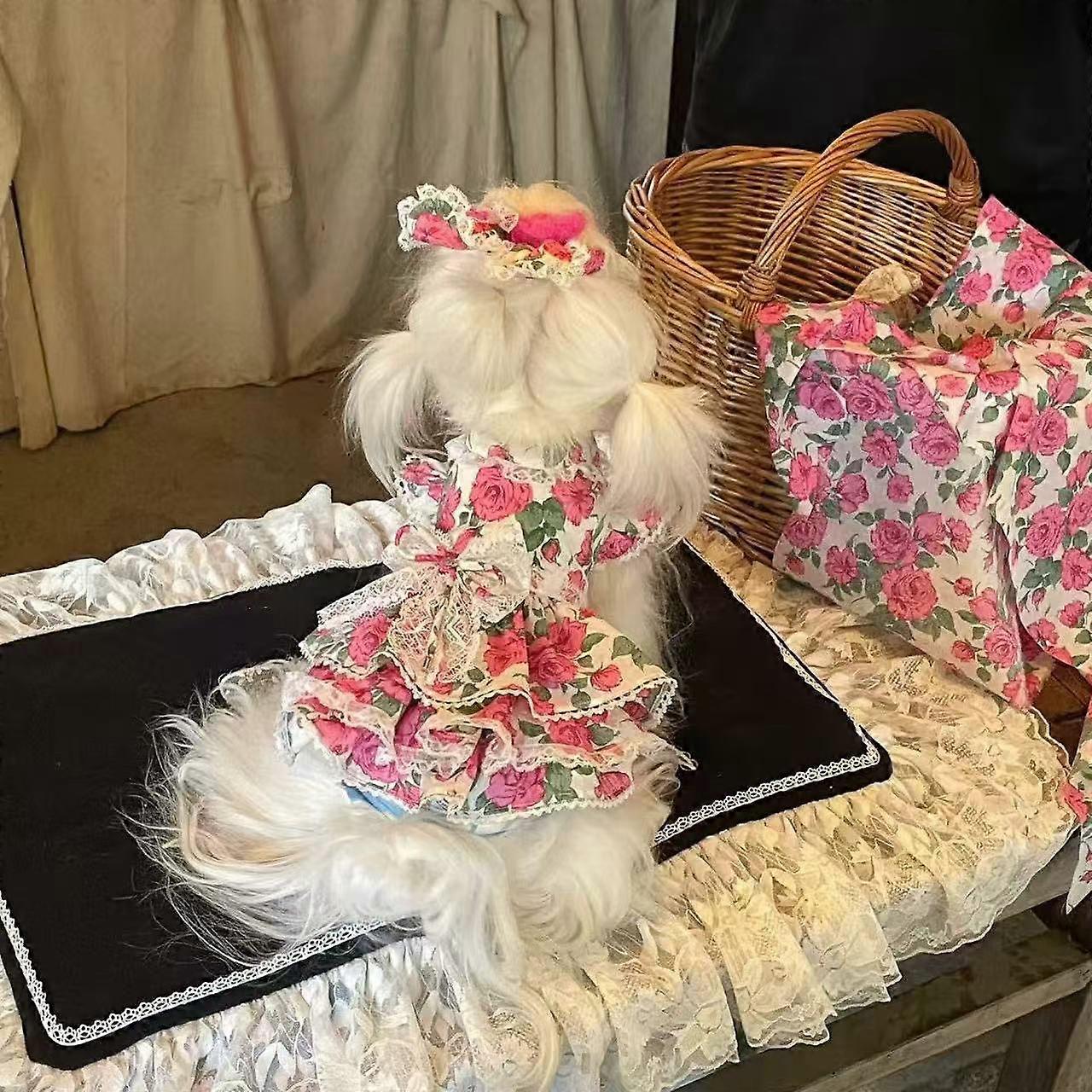 Pet Spring Rose Dress Pet Cat Dog Yorkshire Teddy Clothes Romantic Talk Multi Tank Top Dog Clothes for Small Dogs