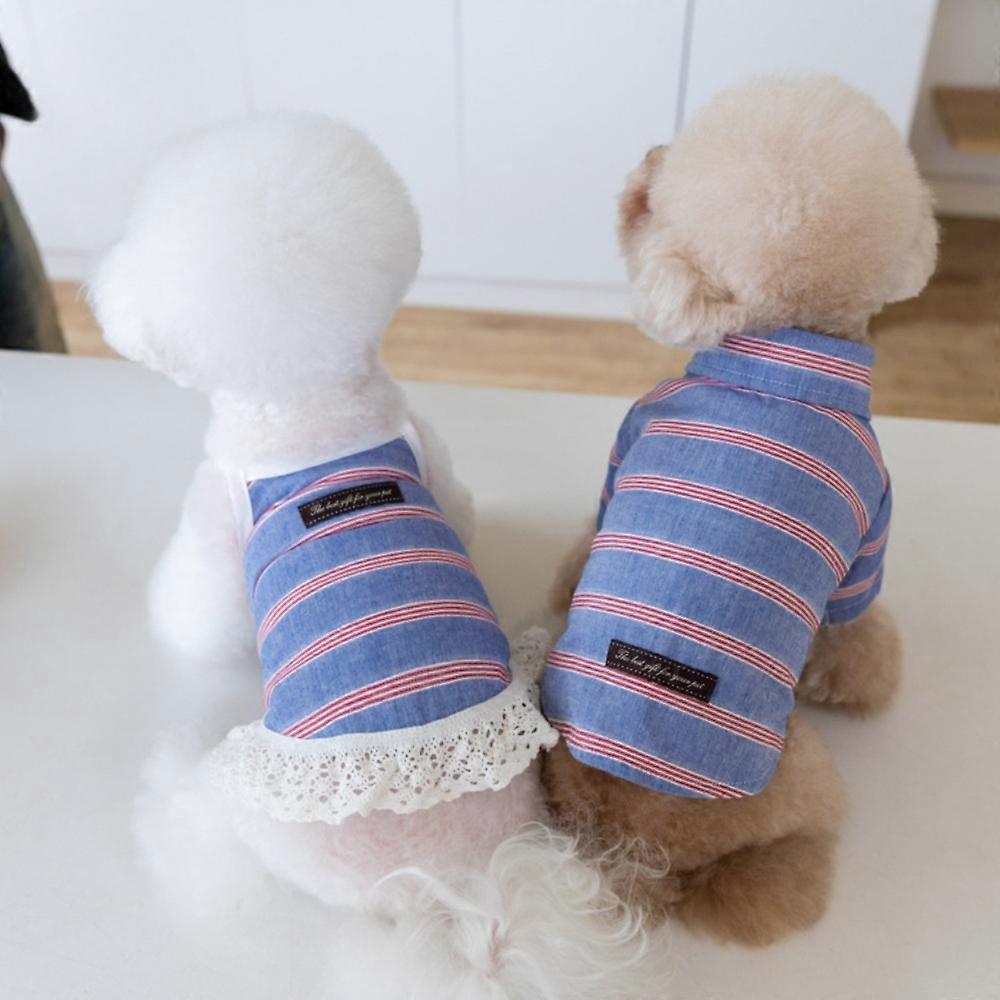 Pet Spring Striped Shirt Pet Clothing Strap Skirt Couple Clothing Pet Tank Top Cat/Dog Teddy Clothing Puppy Clothes