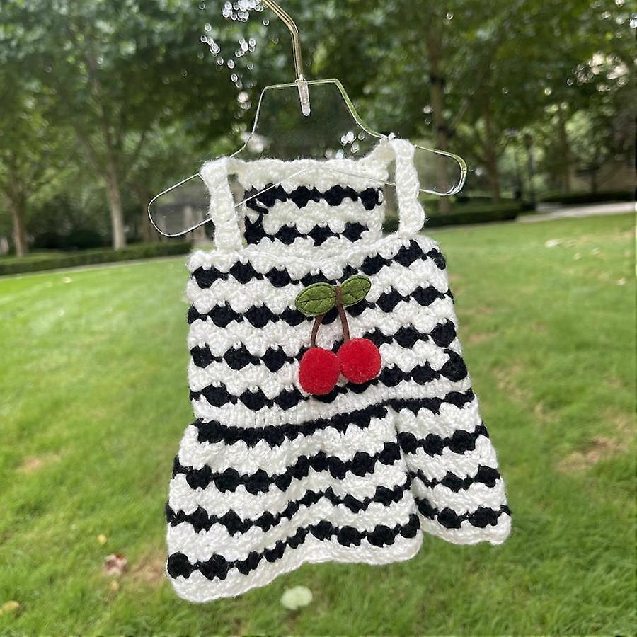 Pet Sling Dress Dog Yorkshire Autumn Winter Warm Hand Knitted Sweater Black White Cherry Sling Dress Dog Clothes for Small Dogs