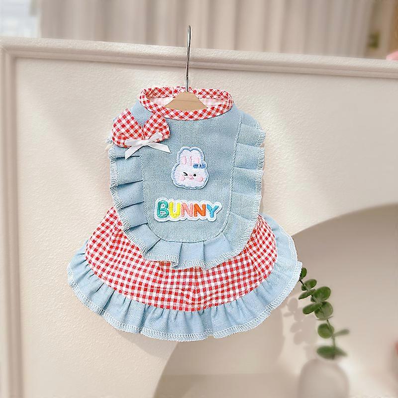 Pet Spring Checkered Denim Dress Pet Princess Dress Small Dog Clothes for Small Dogs Puppy Clothes