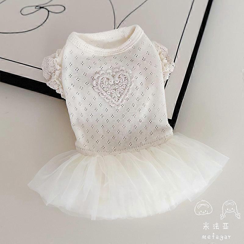 Pet Mesh Base Dress, Breathable Mesh Fluffy Lace Lace Sleeves Beige Gauze Skirt Dog Clothes for Small Dogs Puppy Clothes
