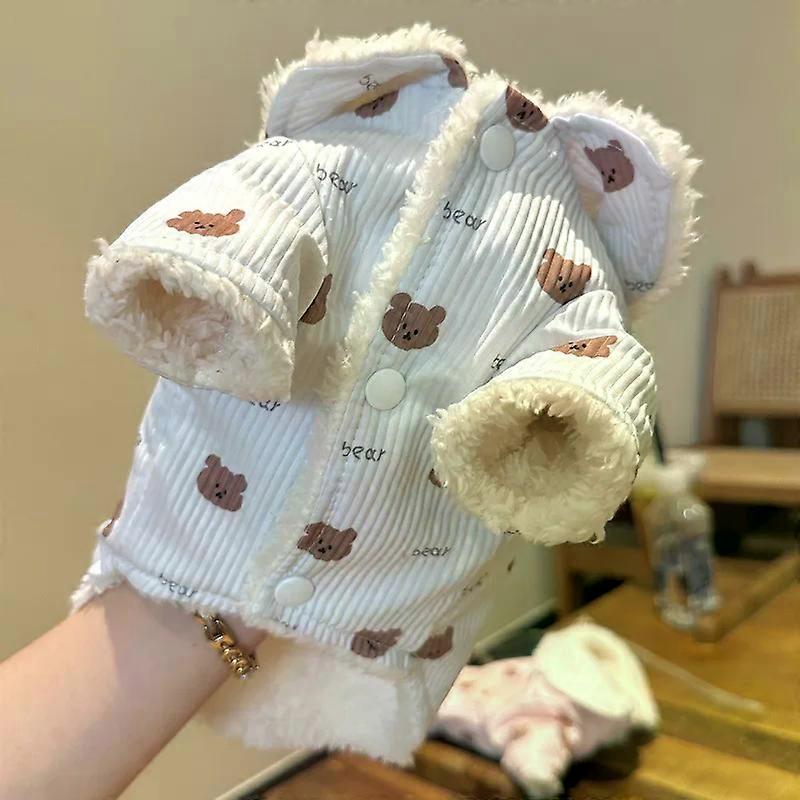 Pet Thick Plush Corduroy Vest Teddy Small Dog Cat Bear Plush Collar Autumn/Winter Cute Cartoon Coat Puppy Clothes Jacket