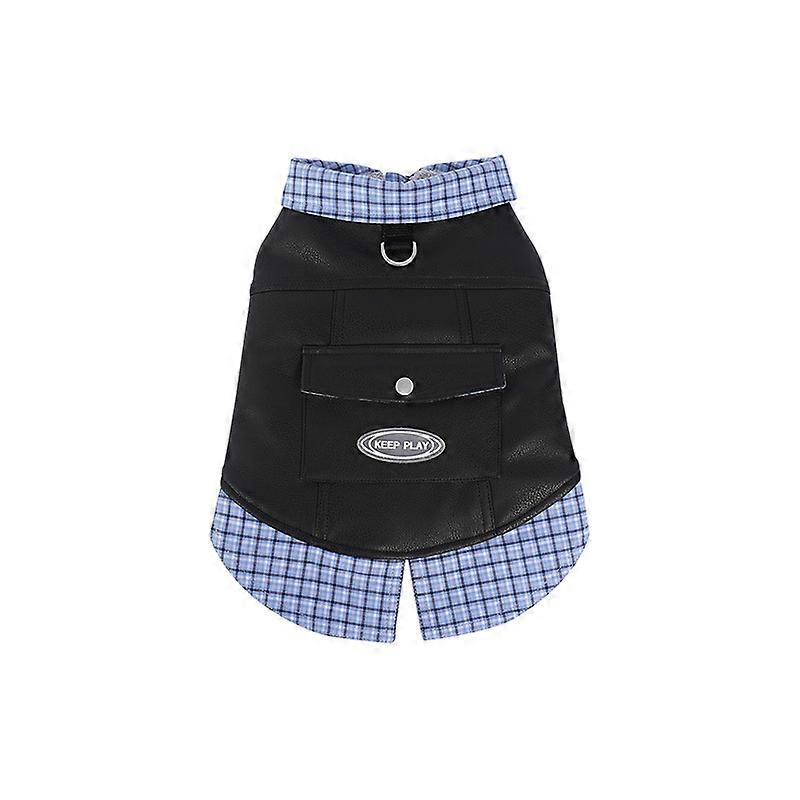 Autumn Winter Clothes Lapel Leather Jacket Patchwork Plaid Little Dog Warm and Plush Two Legged Pet Clothing Puppy Clothes