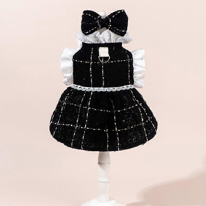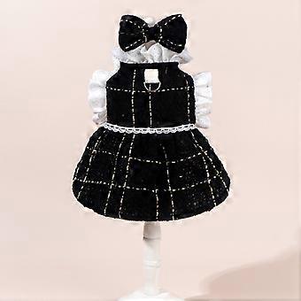 Pet Spring Lace Dress Pet Checkered Autumn Bow Teddy Cat Clothing Dog Dresses for Small Dogs Puppy Clothes