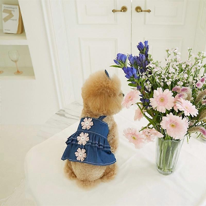 Spring Pet Denim Dress Cute Flower Button Vest Dress Pet Dog Bow Headband Dog Clothes for Small Dogs