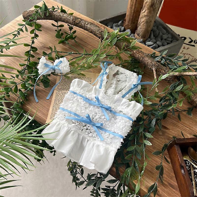 Pet Spring Mesh Embroidered Dress Dog Strap Back Small Dog Cool Comfortable Hollow Skirt Headpiece Puppy Clothes