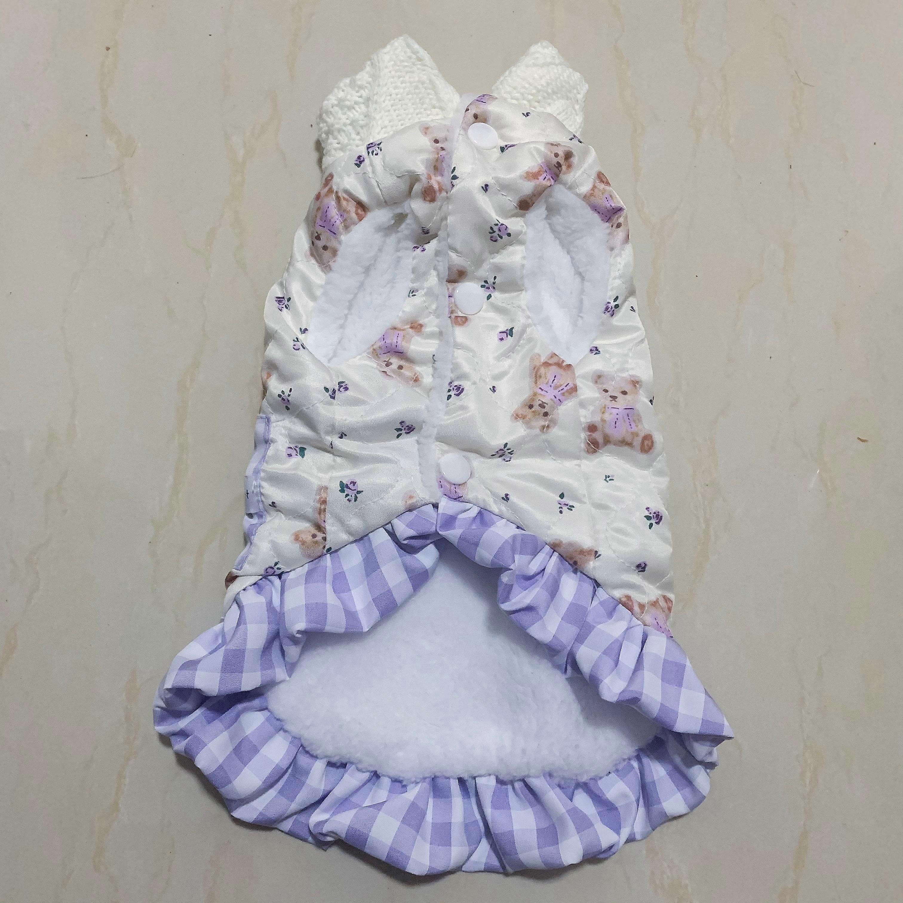 Pet Plaid Lace Floral Coat Autumn Winter Dog Parkas Thicker Bow Base Shirt Teddy Bears and Pets in Winter Clothes for Small Dogs