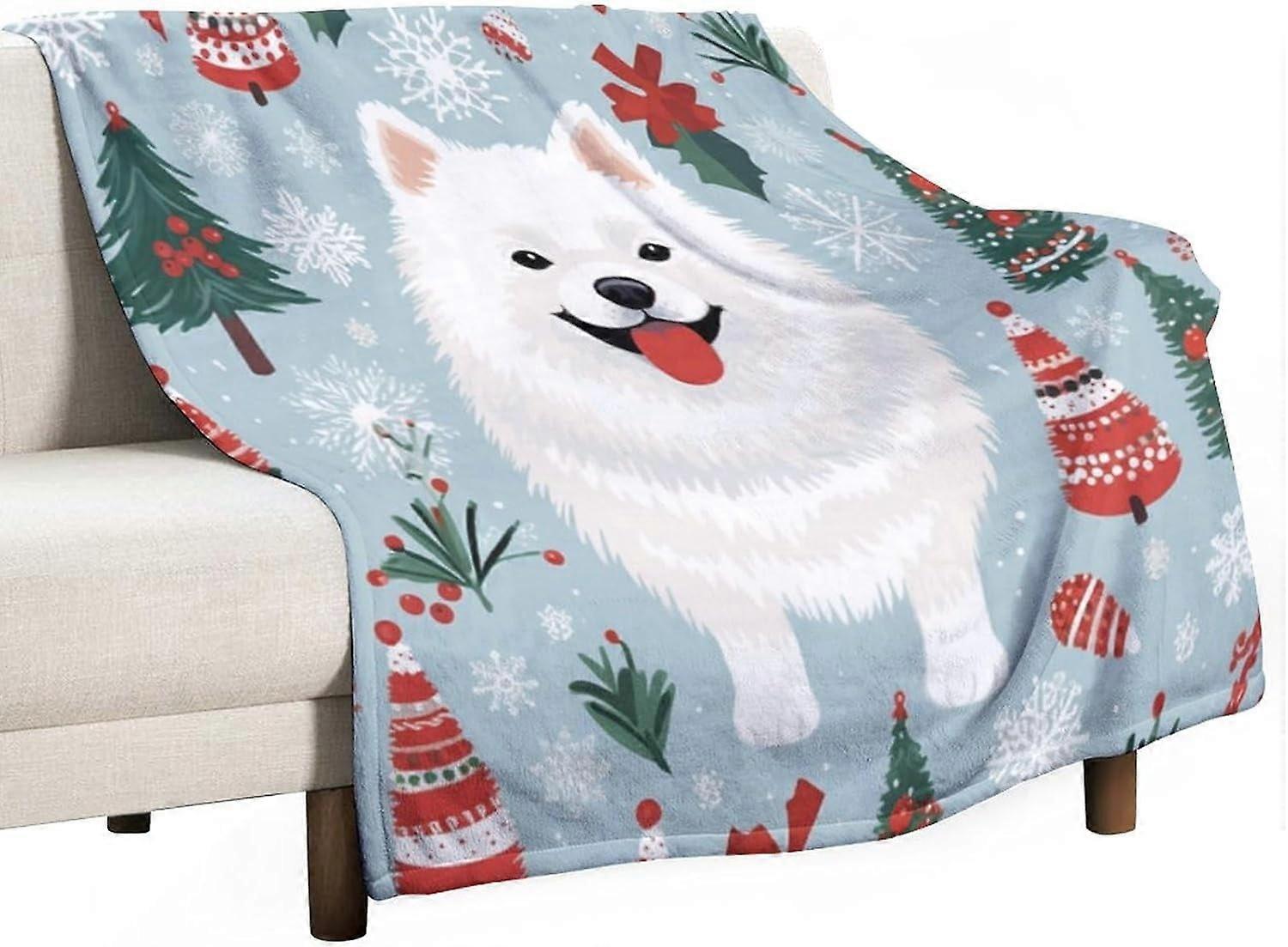Blanket American Eskimo Dog Feliz Naughty Dog Christmas Throw Blanket, 30"x40" Fleece Plush, Warm Cozy for Home Bed Couch, Kid Adult Gift