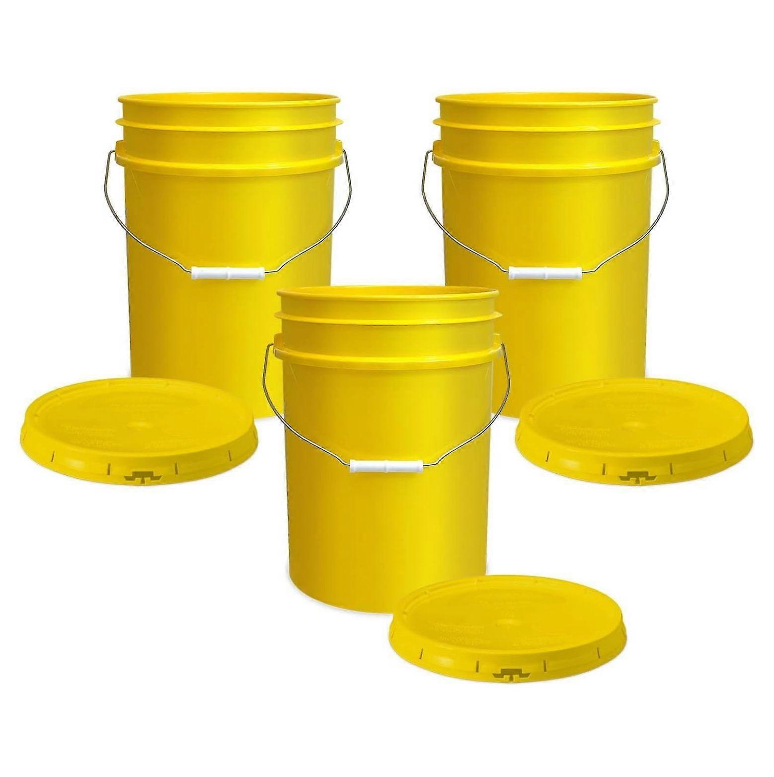 saney 5 Gallon Plastic Bucket with Airtight Lid, Food Grade, Yellow, BPA-Free, Heavy Duty 90 Mil, Reusable Pail, Made in USA, 3 Count
