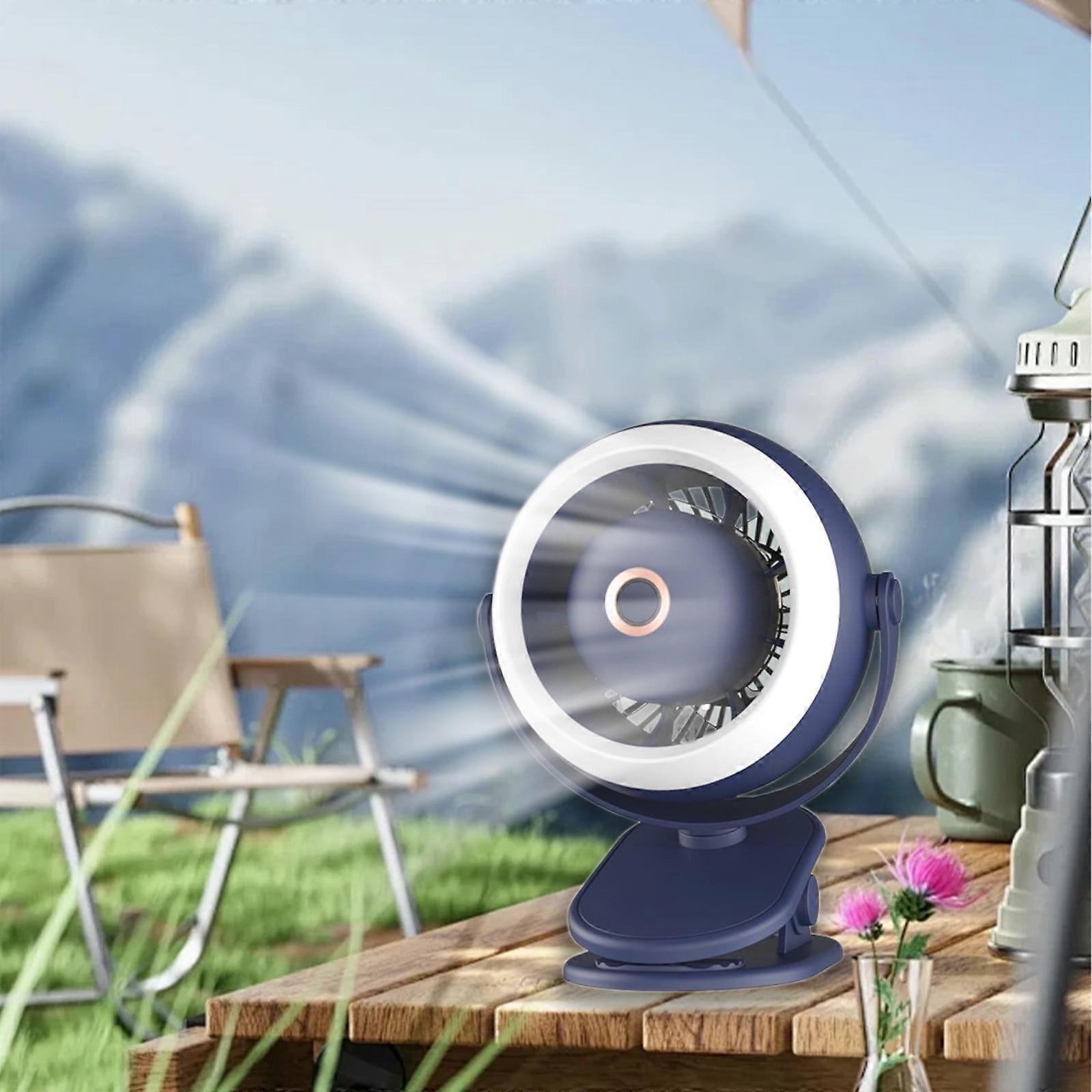 Clip On Fan, Small Portable Desk Fan with Light, 3 Speed Turbo Rechargeable Silent Personal Fan - Compatible with USB