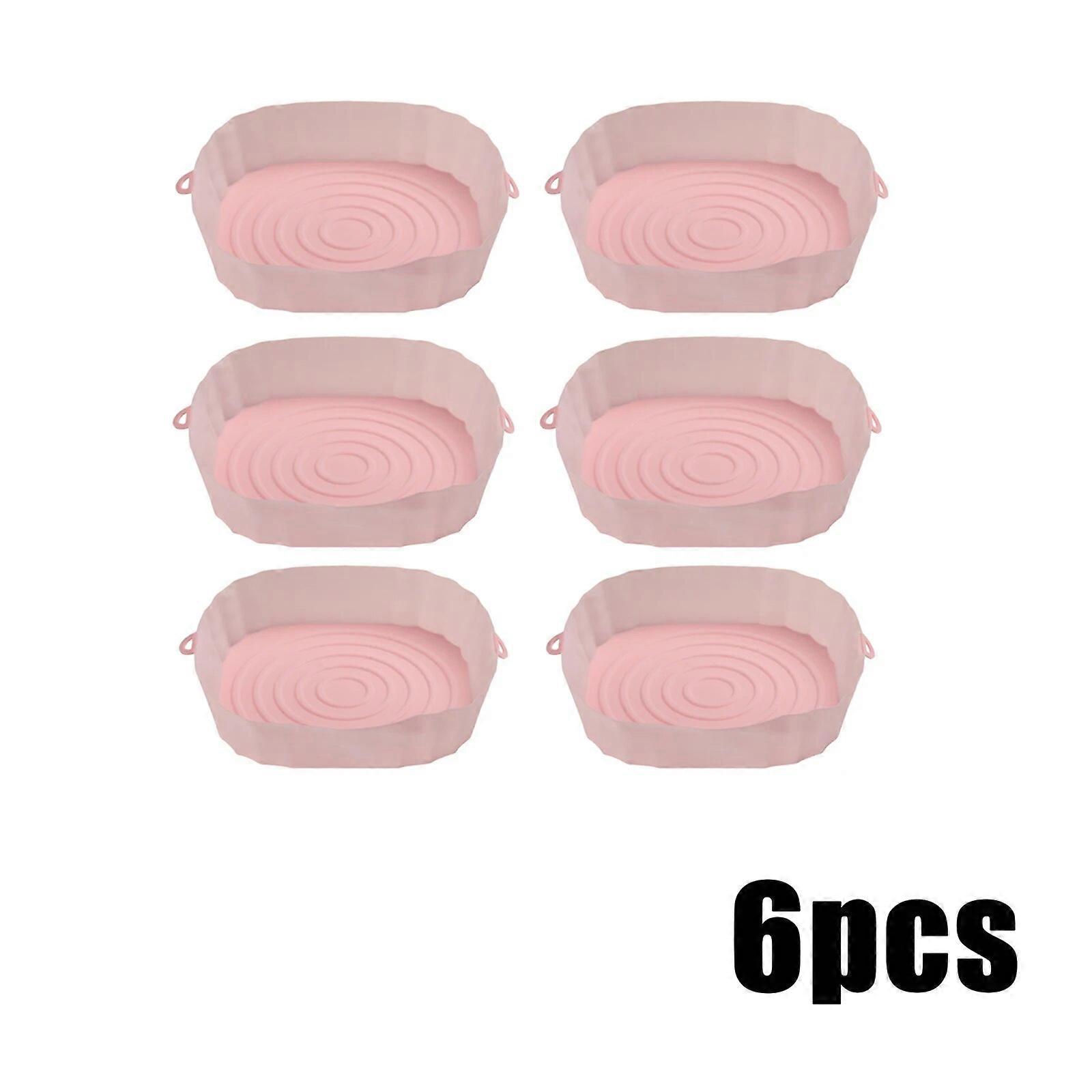 1/2/3x Silicone Air Fryers Oven Baking Tray Pizza Fried Chicken Airfryer Silicone Basket Reusable Airfryer Pan Liner Accessories Pink-6PCS