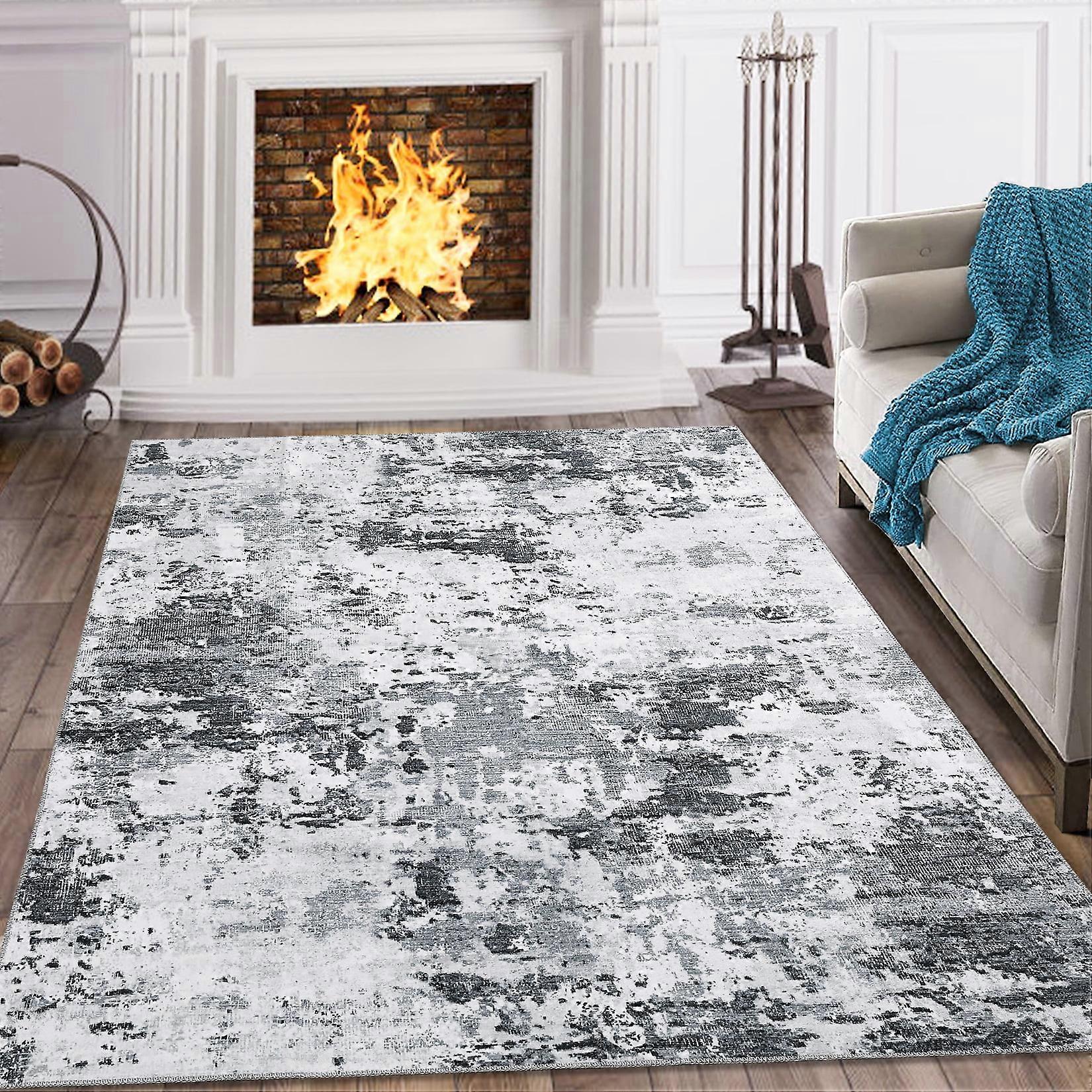 Haperlare Abstract Area Rug 4 x 6 Non Slip Foldable Thin Rug Low Pile Non-Slip Backing Super Soft Modern Fuzzy Rug for Bedroom Living Room, Gray