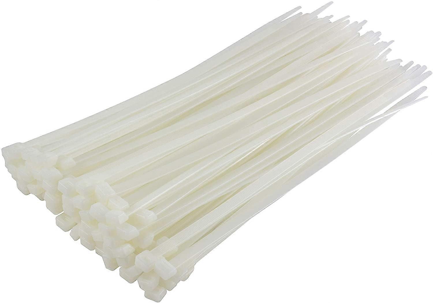 12 Inch White/Clear Heavy Duty Zip Ties, 100 Pack, 120lb Strength, UV Resistant Nylon Cable Ties, Self-Locking 12"