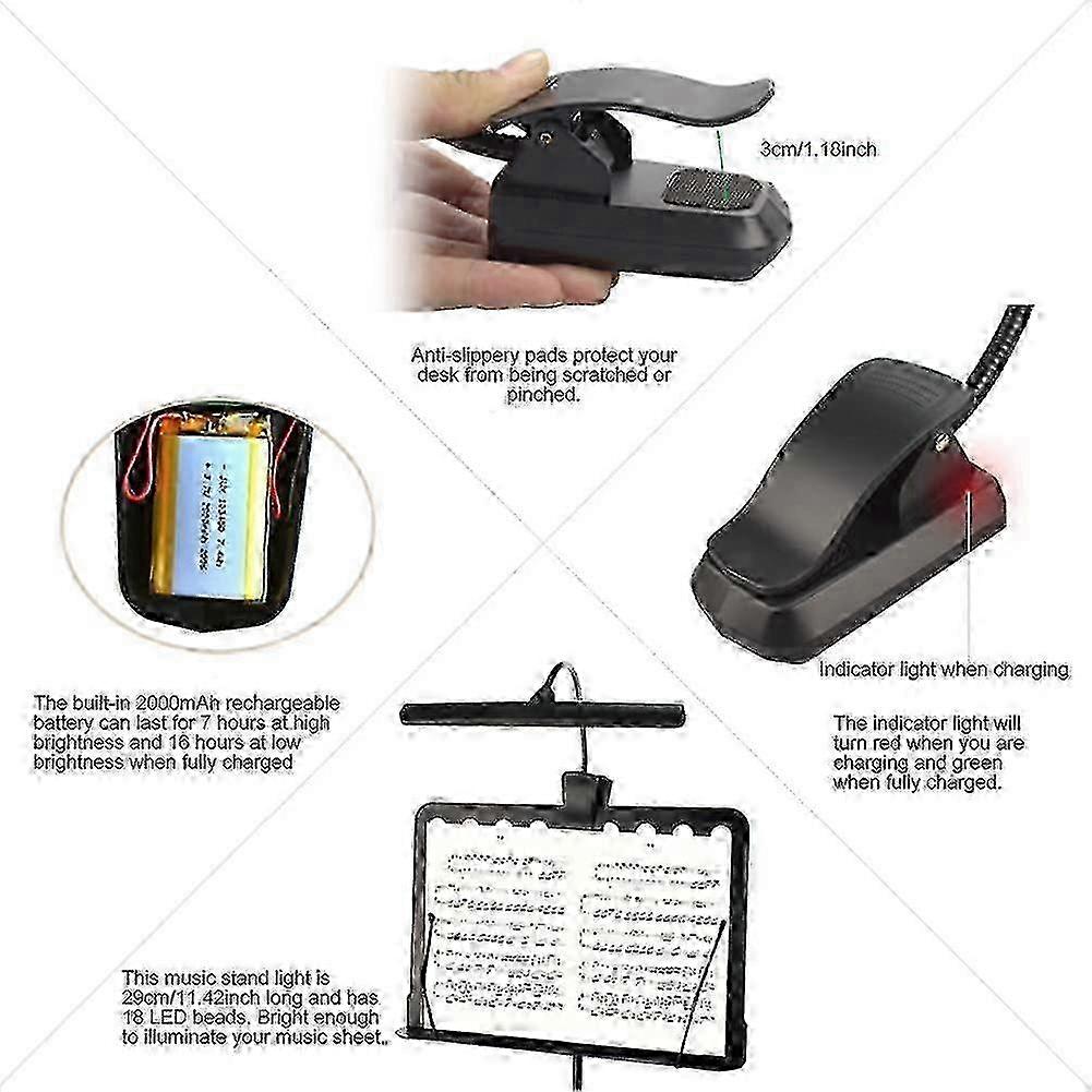 Rechargeable Music Stand Light, 18 Leds Clip On Piano Light, 3 Colors Temperature & 2 Levels Brightness Settings, Perfect For Piano, Orchestra, D