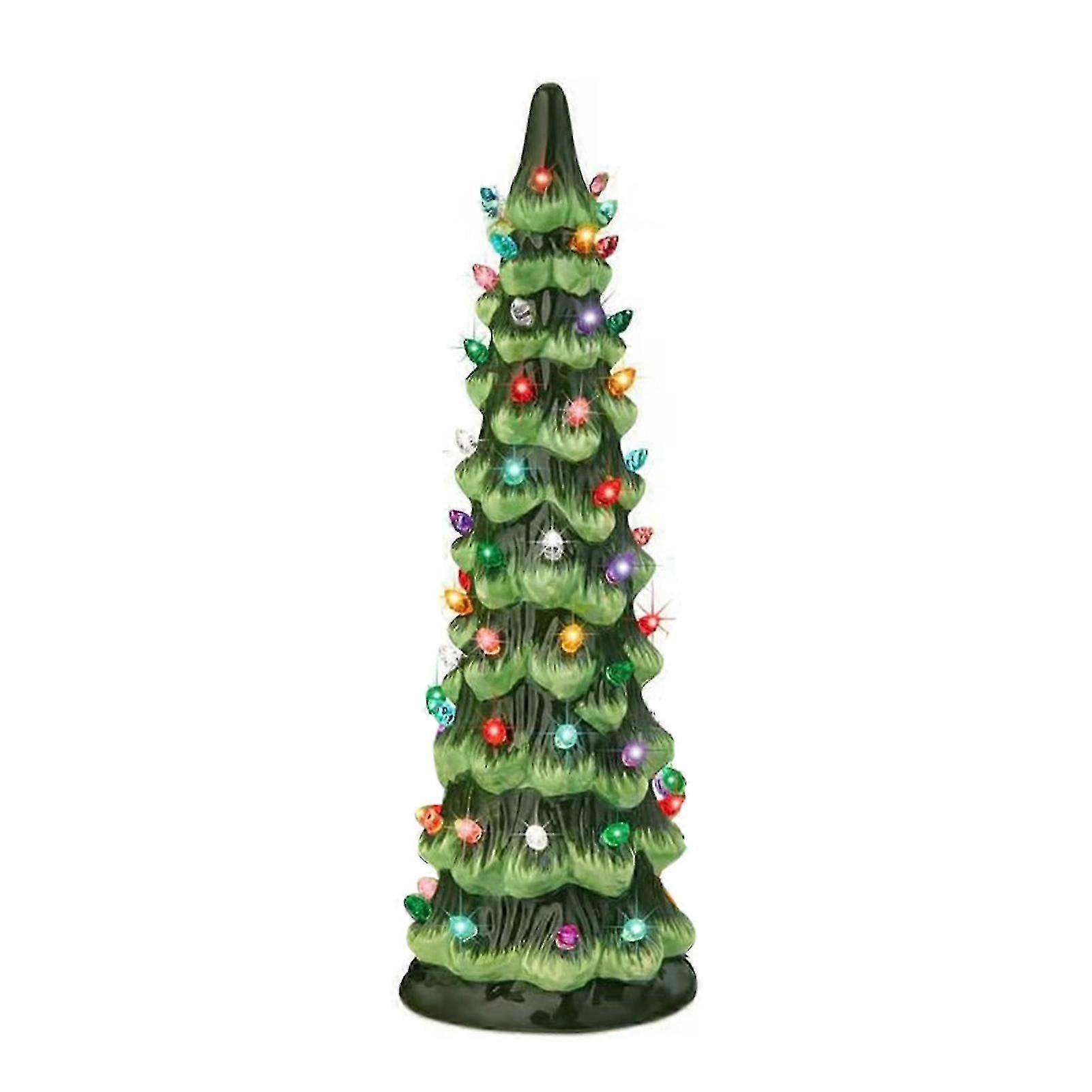 Mini Christmas Tree Figurine with Colorful LED Light Xmas Tree Resin Statue Sculpture Home Office Desktop Decoration Ornament