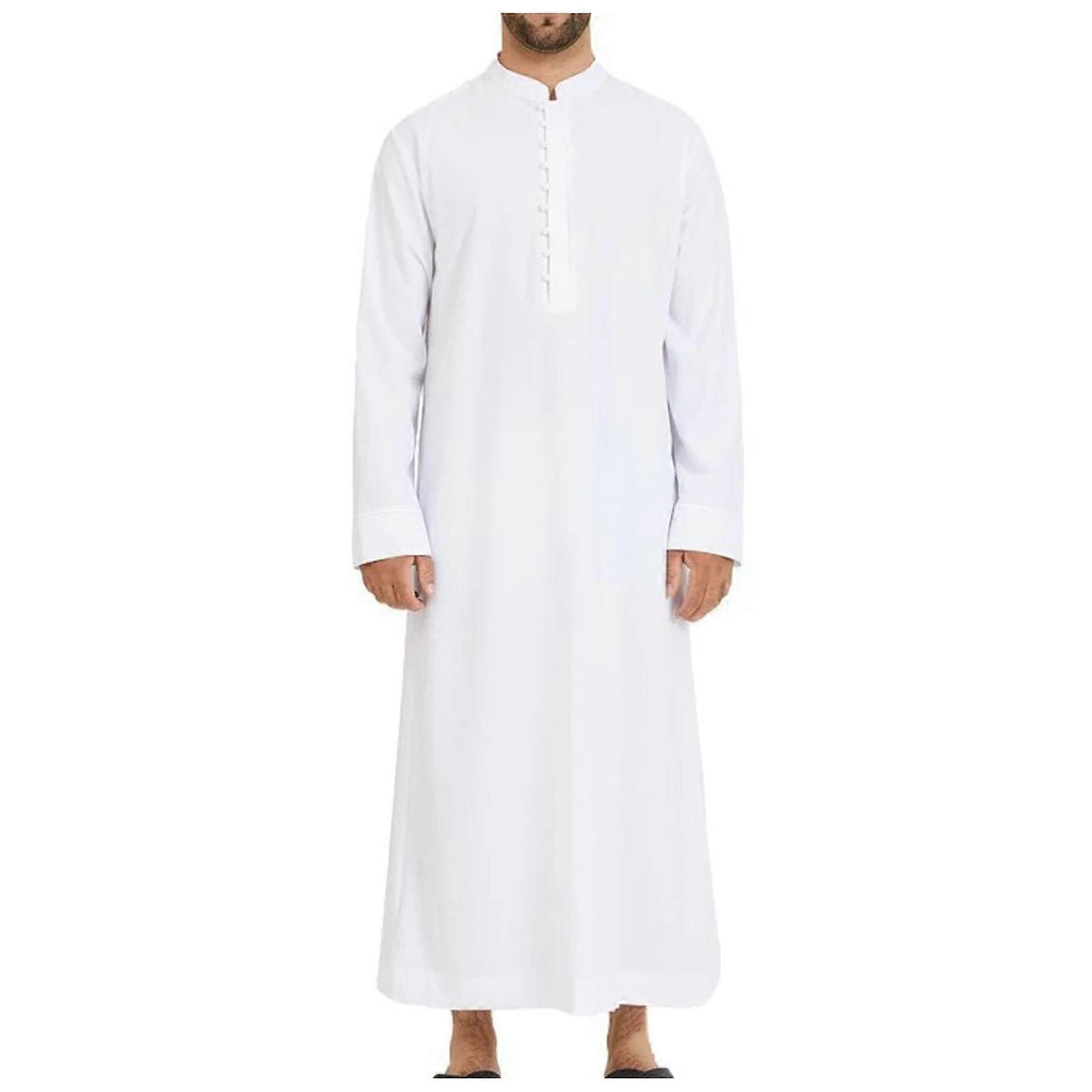 Muslim Long Sleeve Thobe StandUp Collar Men's Shirt White Kaftan Tunic Traditional Indian Dress XXL Large