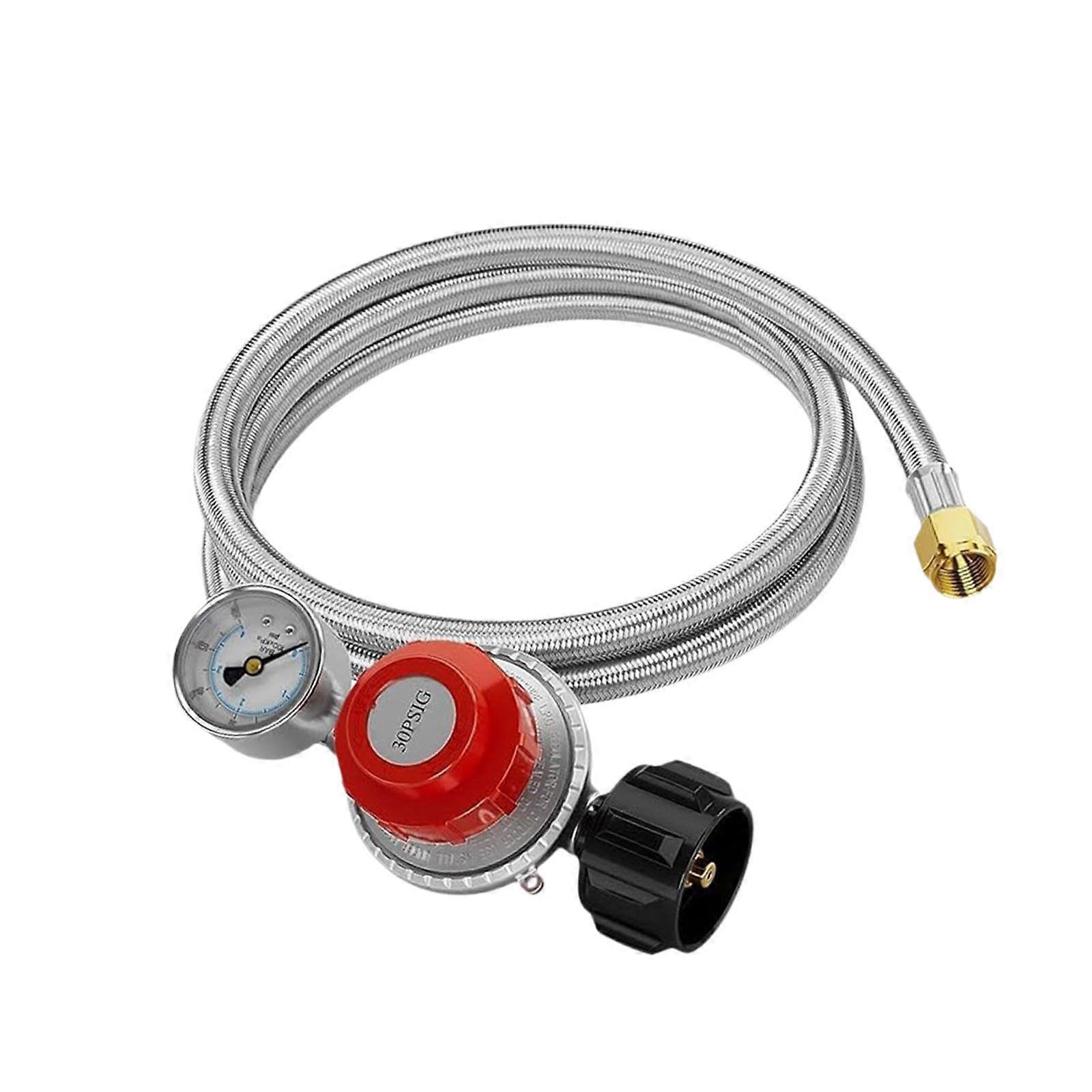 030 PSI Pressure Propane Regulator With Gauge Replaces Gas Grill Regulator 5Foot Hose