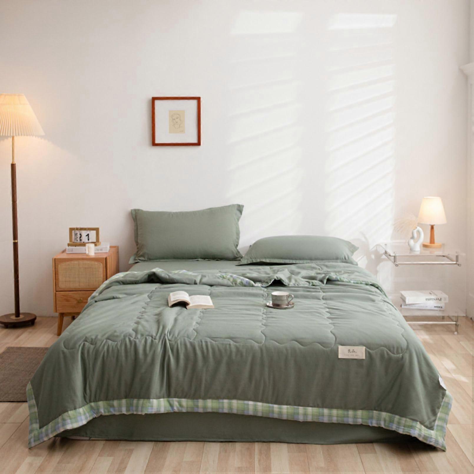 Summer Duvet Polyester Lightweight Comforter 180x220 cm Dark Green For Sofa Blanket, Travel Blanket And Cooling Blanket