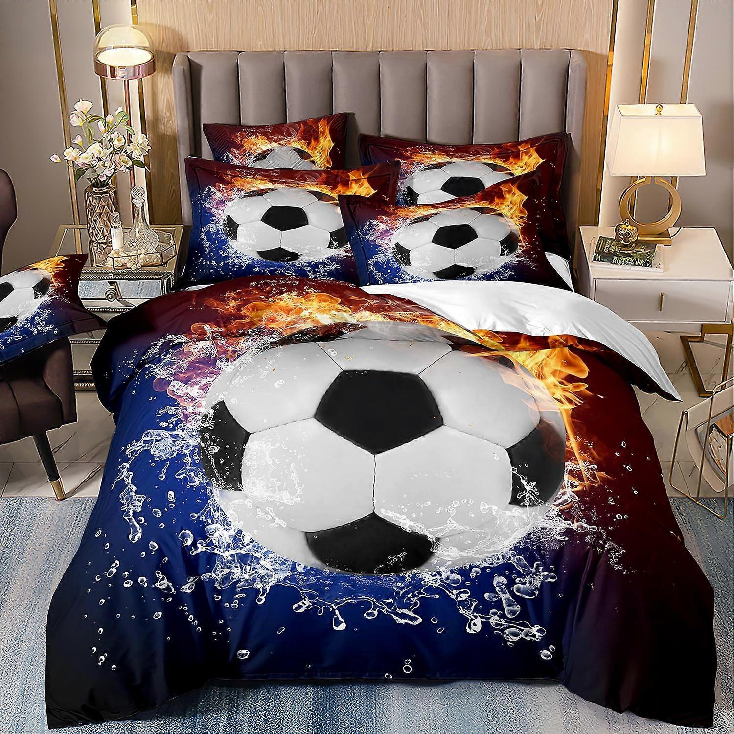 Football Bedding 240x220 Duvet Cover Set Microfiber Red And Blue For Teens Boys Girls Kids Soccer Theme