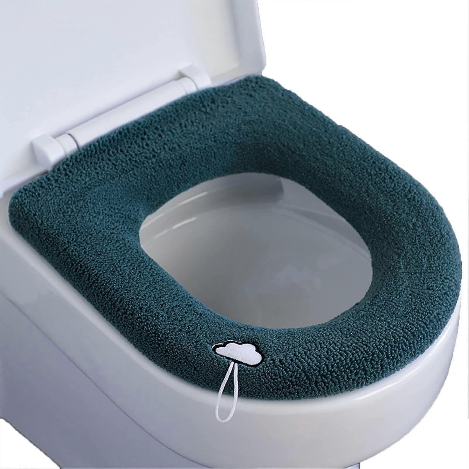 Toilet Seat Cushion Thickened Soft Washable Pad Dark Green Universal Fit Bathroom Warmer