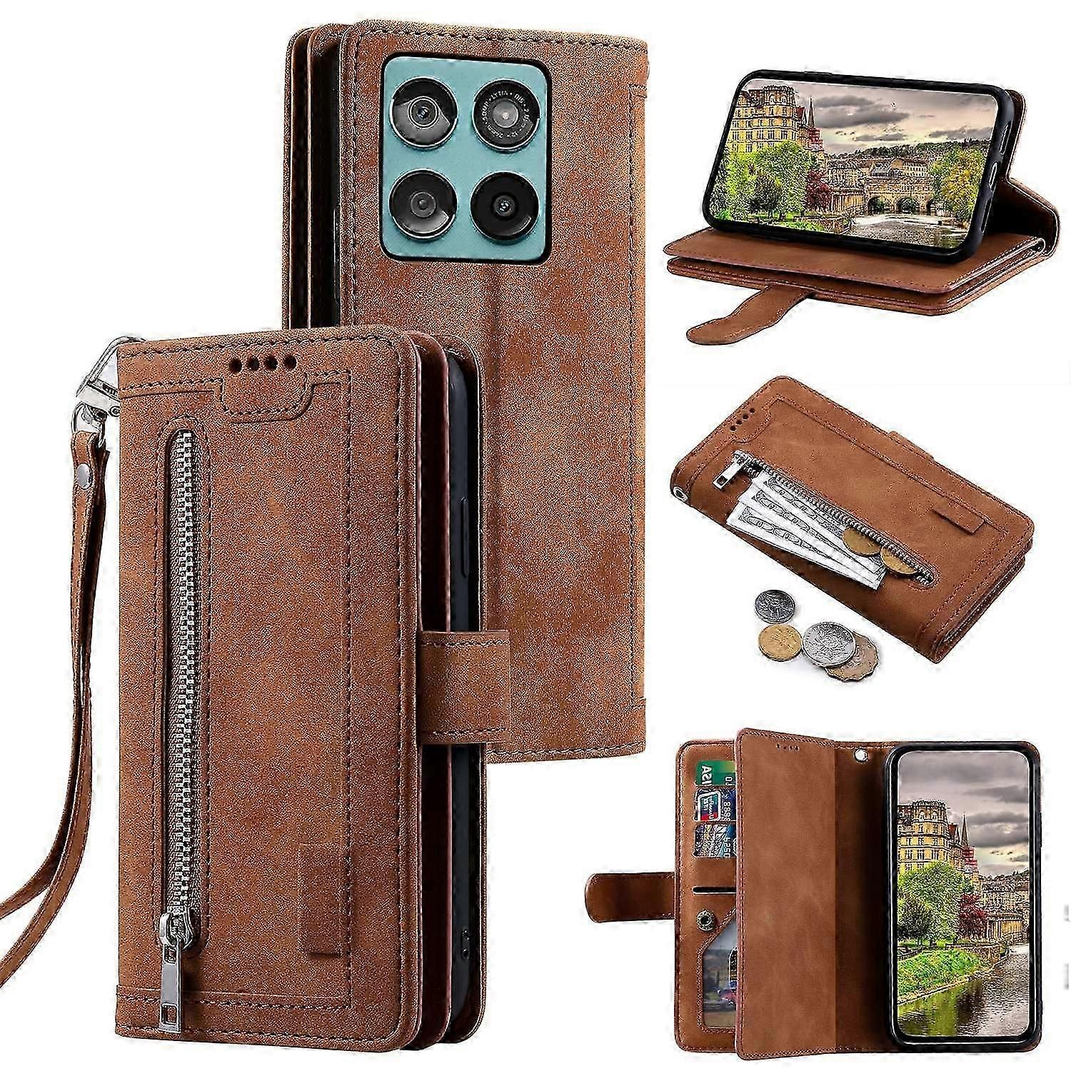 PU Leather Wallet Case for Motorola Edge 60 5G with Zipper and 9 Card Slots in British Style