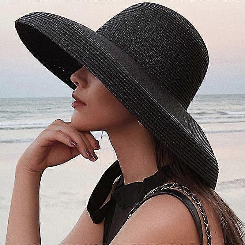 2023 New Summer Sun Hats Ladies Solid Plain Elegant Wide Brim Hat Female Round Top Panama Floppy Straw Beach Hat Women