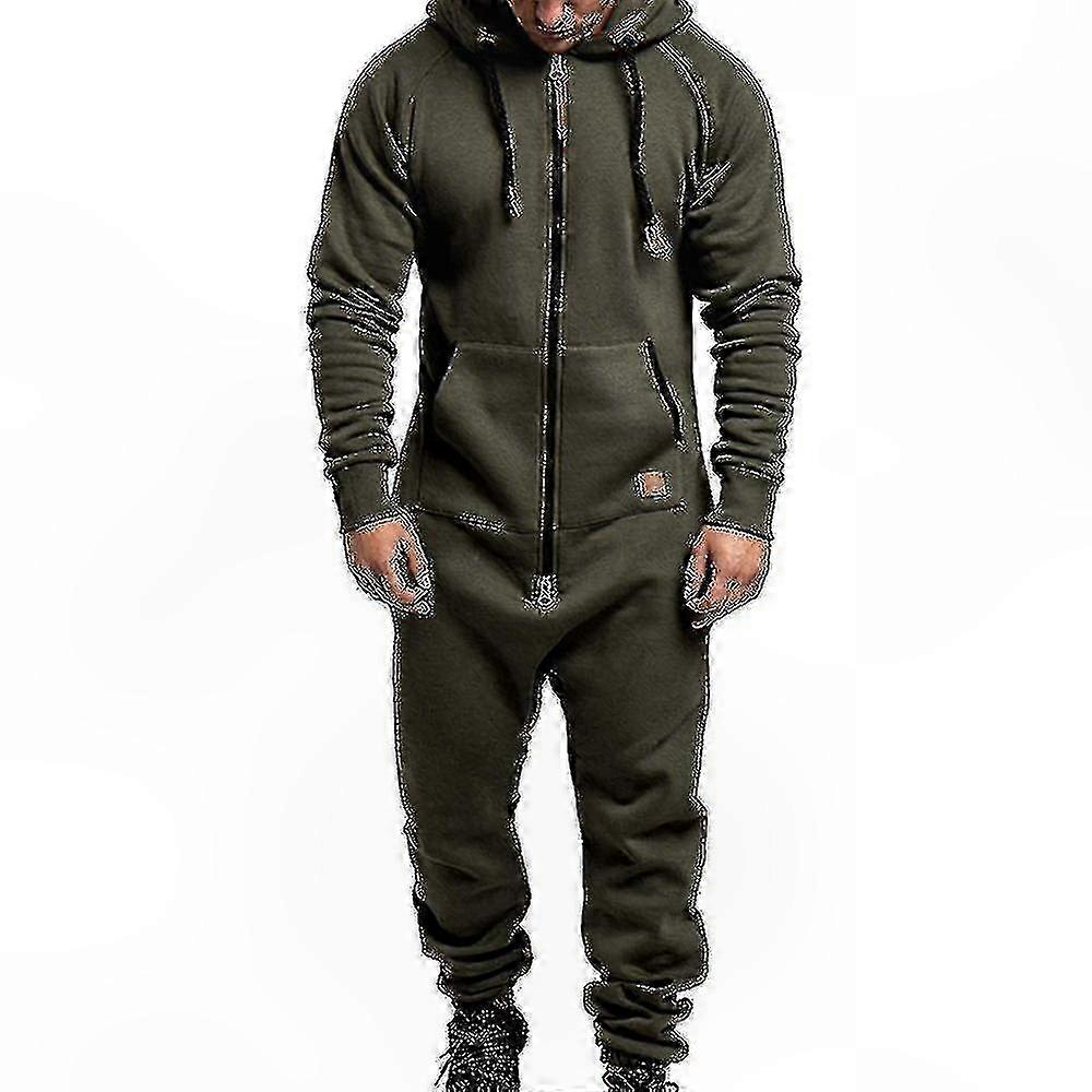 Winter Hooded Jumpsuit for Men - Casual Zip-Up Romper with Long Sleeves and Comfortable Fit Playsuit