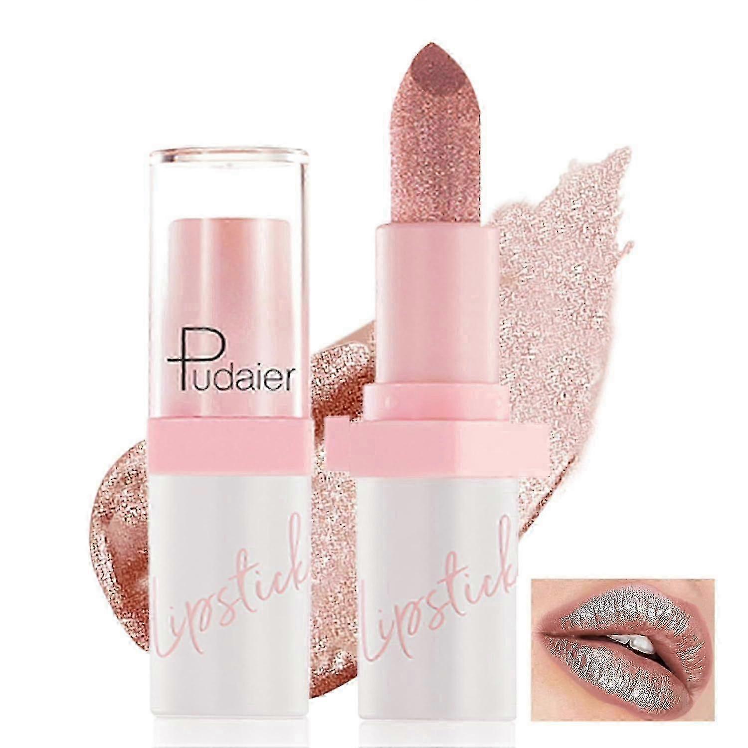 25-26 Rouge à lèvres pailleté métallique pour femmes, rouge à lèvres pailleté nacré, teinte à lèvres brillante 3D métallique, rouge à lèvres
