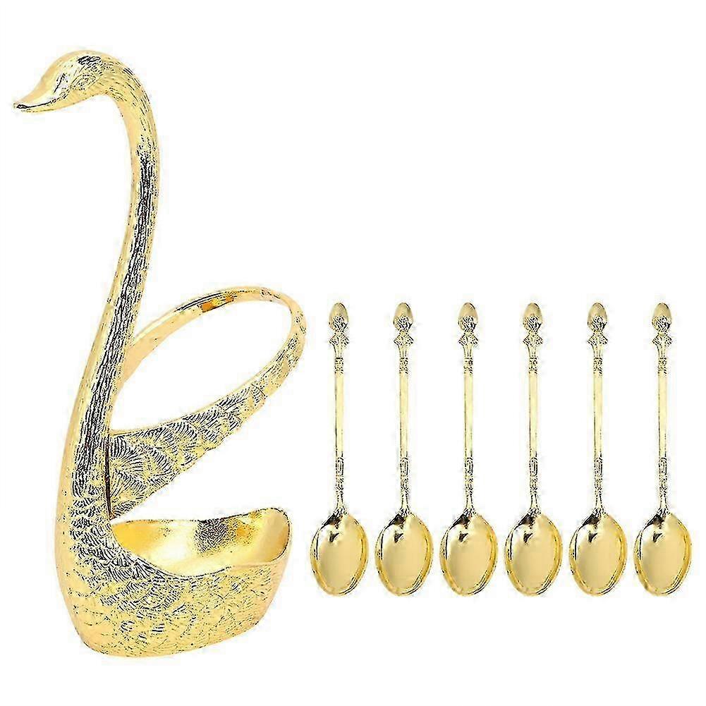 25-26 Gold Zinc Alloy Swan Dessert Spoons Set, Elegant Fruit Spoons, Wedding Tableware, 6-Piece Kitchen Cutlery