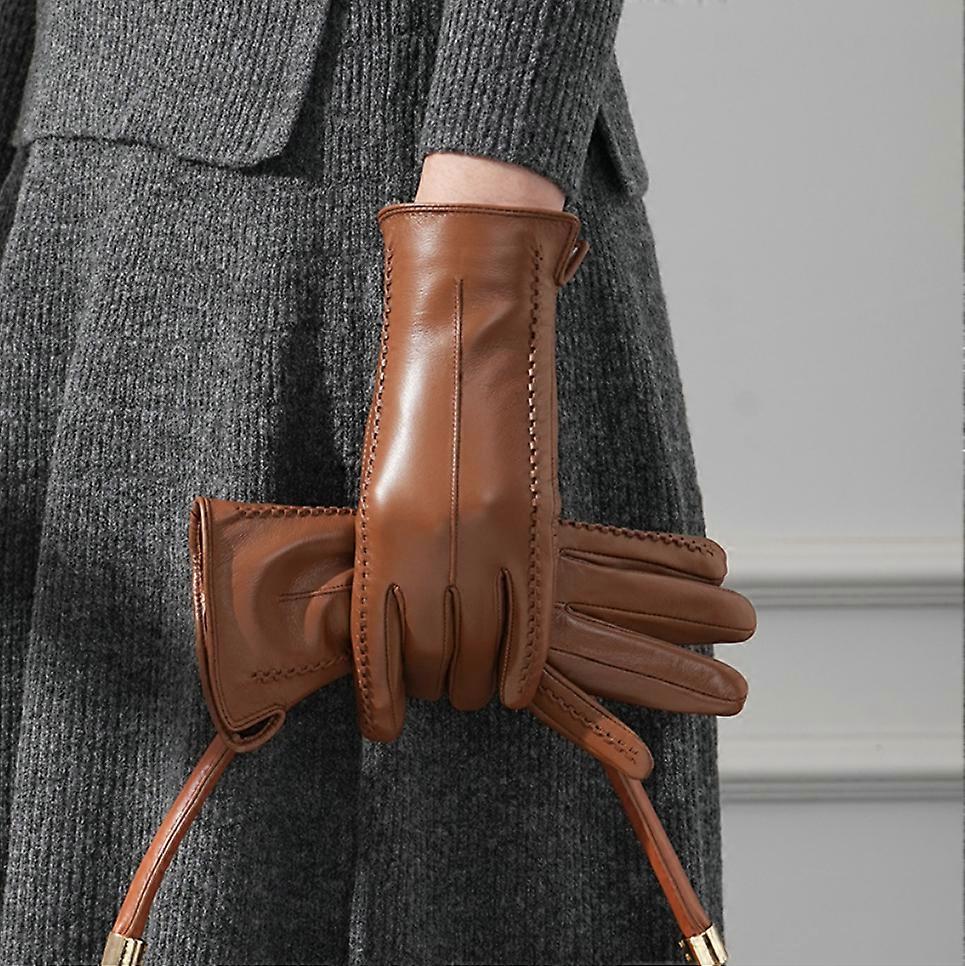 Sheepskin Genuine Leather Gloves For Women, Winter with Plush and Thick Touch Screen Insulation Gloves