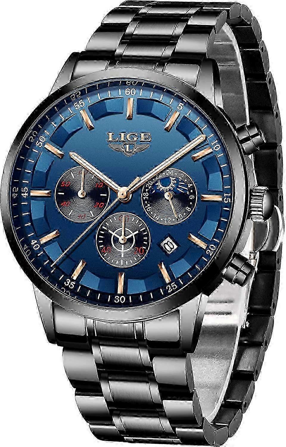 25-26 LIGE Mens Watch Fashion Sports Chronograph Waterproof Analog Quartz Stainless Steel Strap Casual Watch