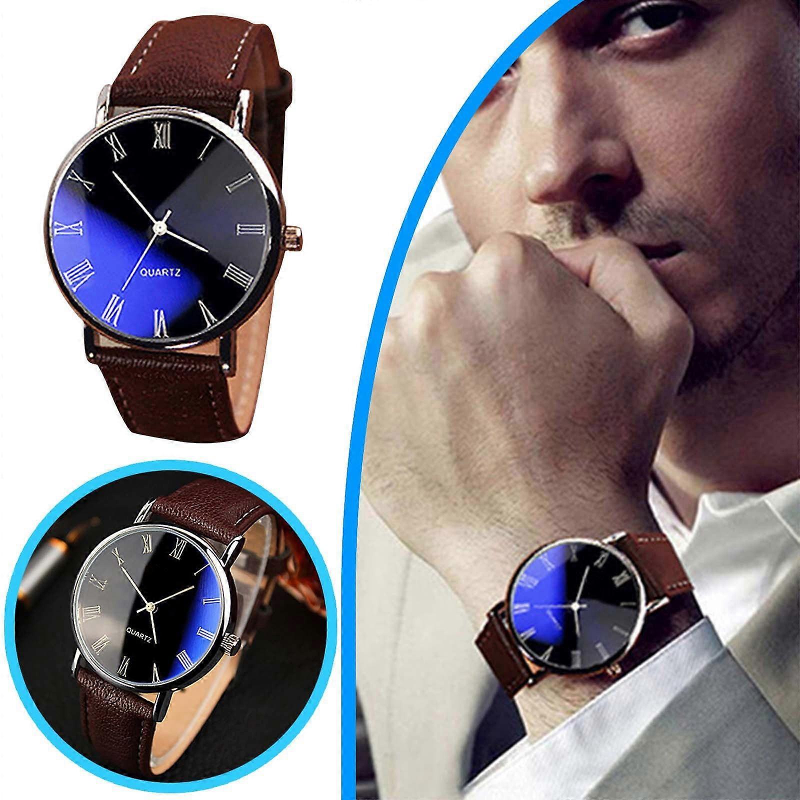Men's Watch Belt Watch Fashion Blue Light Roman Lettering Business Men's Watch Quartz Watch Wrist Watches for Men Women