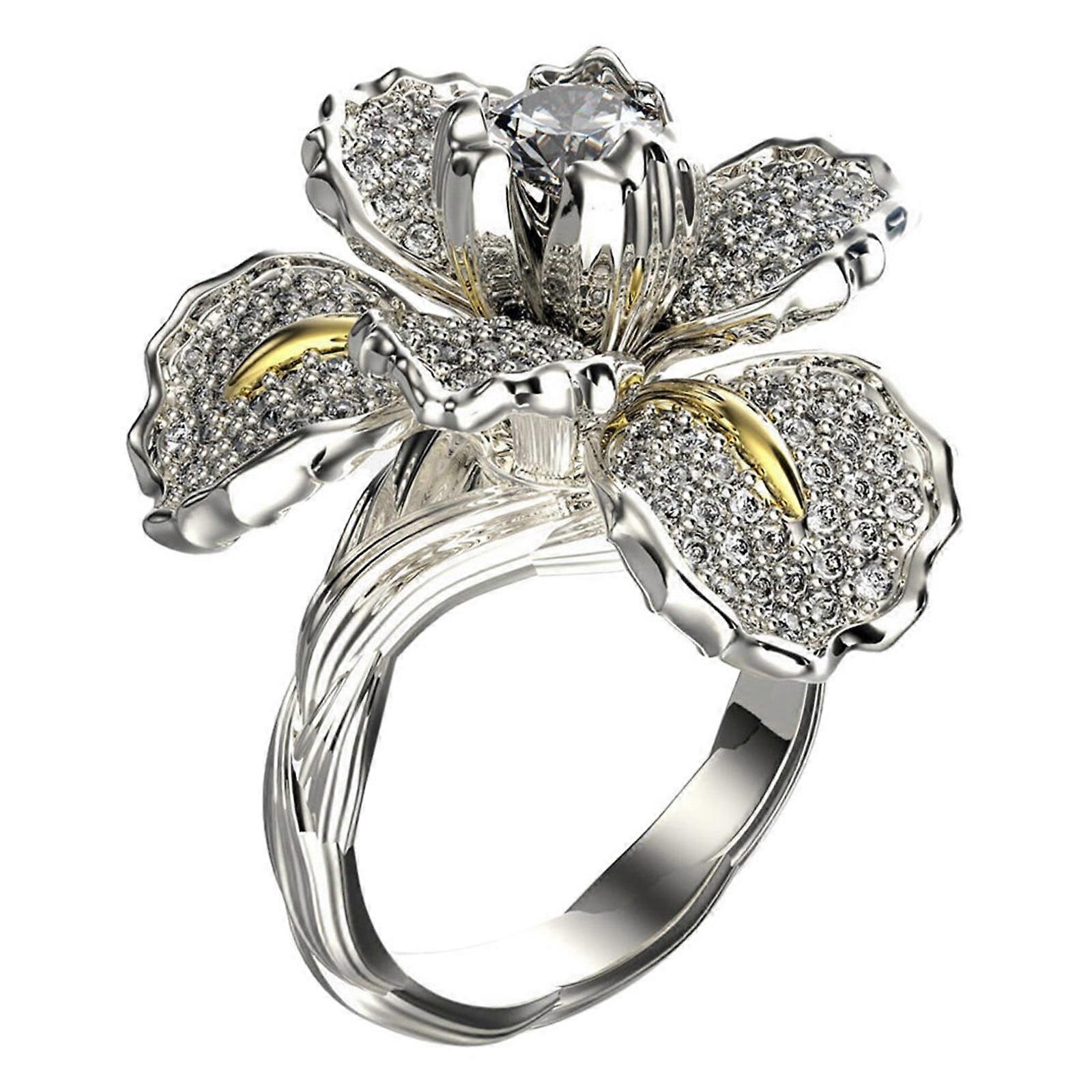 Elneeya Clearance Rings for Women Women's Micro Pave Full Diamond Iris Two-Tone Blue Topaz Flower Ring