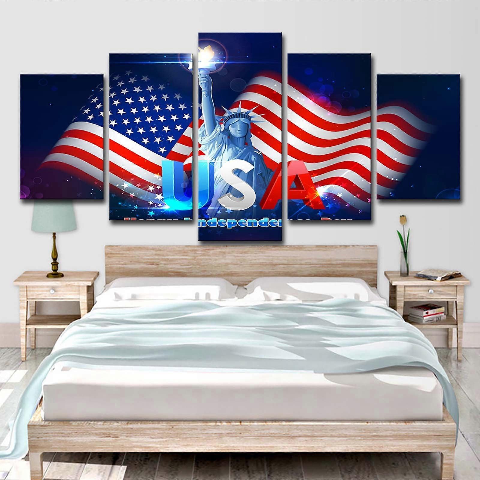 WJSXC 5 Canvas Art Paintings for Living Room Home Decoration In the United States Independence Day Canvas C