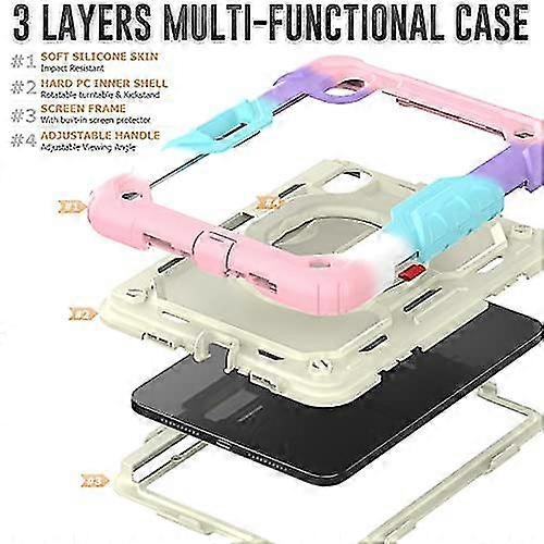ENHANCED FULL-BODY PROTECTION: 3-Layer Protection - This tablet case is composed of hard plastic frame built-in screen protector + hard pc inner shell and soft tpu outer shell bumper, which provides all-round protection for your tablet in daily use against scratches, shocks and vibrations. 8 color tablet cases for you to choose, perfect for gift, girlfriend, ladies, kids, children 360 ROTATABLE KICKSTAND & HANDHELD: Located on the back of the case, with built-in 360-degree swivel foldable stand, providing multiple angles, a more flexible and convenient way to use the tablet during work or play. Ergonomically 360-degree swivel hand strap for easier grip and prevents slipping out of hand BUILT-IN PENCIL HOLDER & 1:1 MOLD OPENING: Support the 2nd Gen Pencil's magnetic attachment and charging features, unique slot Pencil holder design ensure easily store and remove Pencil. Precise cutout perfectly aligns up to ports, easy access to all buttons, controls and ports ADJUSTABLE & DETACHABLE SHOULDER STRAP: Featuring an ultra-portable adjustable and detachable shoulder strap, it ensures maximum portability wherever you go. Completely hands-free for you and your family during hikes, trips or other outdoor activities Note: Due to the light and screen setting difference, the item's color may be slightly different from the pictures. Please allow slight dimension difference due to different manual measurement.