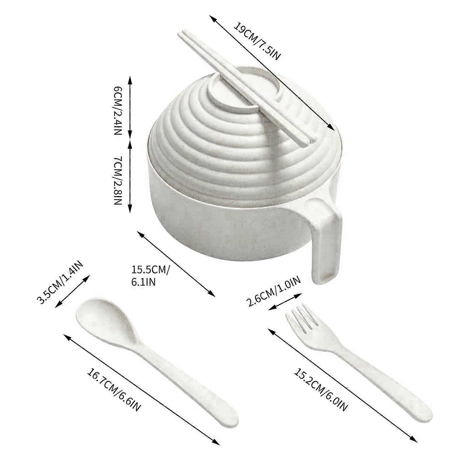 Ruhiku GW Microwave Ramen Cooker Bowl Set Quick Ramen Cooker with Handles Ramen Noodle Cooker with Spoon Chopsticks Fork College Dorm Room Apartment Essentials, White