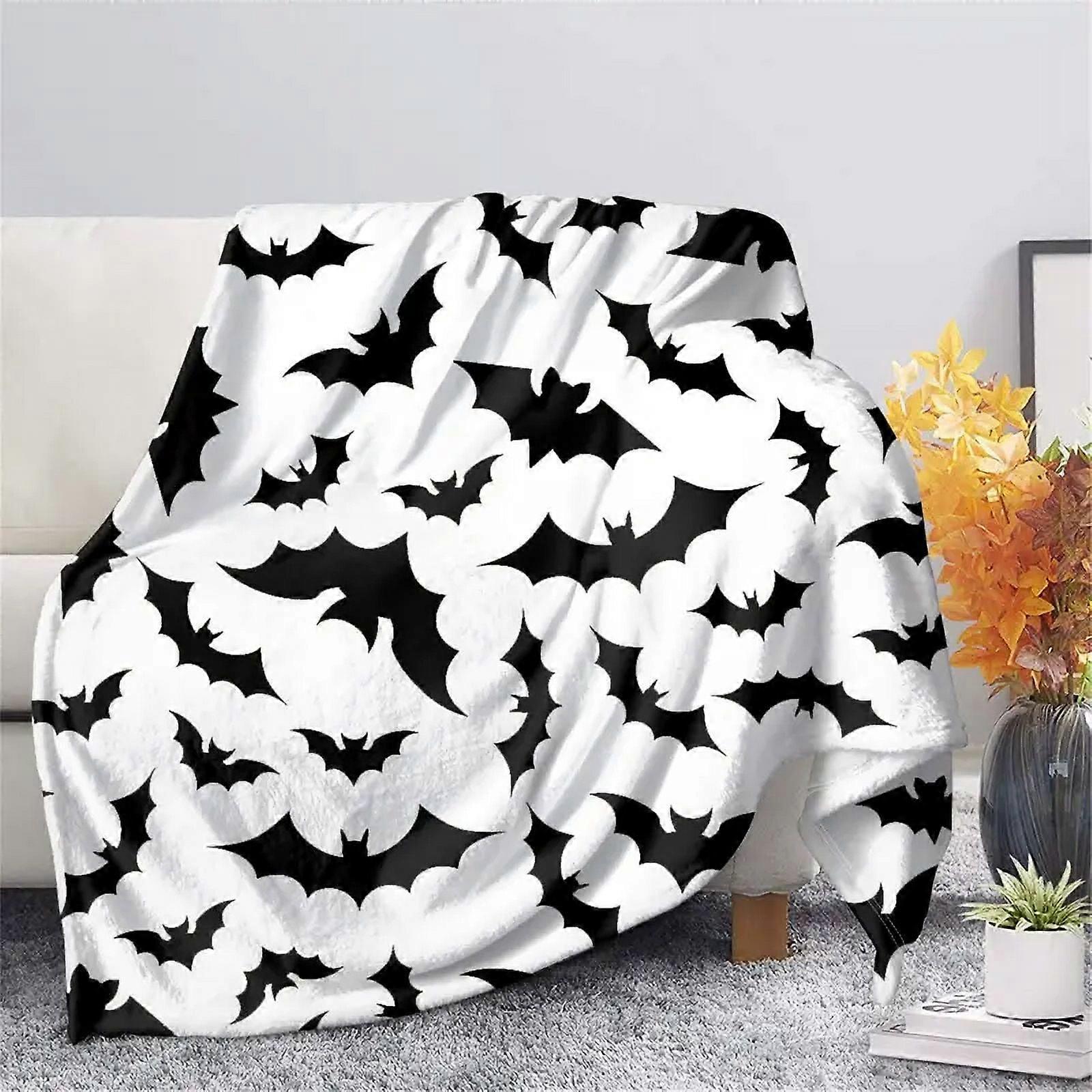 Halloween Bats Haunted Mansion Blankets Purple Soft Warm Flannel Throw Blanket Bed Grinning Ghosts for Sofa Gifts